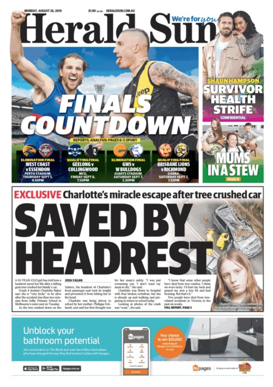 Herald Sun Front Page Today / Flynn:those letters not from me.. We collect information about the content (including ads) you use across this site and use it to make both advertising and content more relevant. Welcome to heraldsun.com.au digital print edition! Find daily local breaking news, opinion columns, videos and community events. Got a story tip or idea? On tuesday 13 july 2021 choose from our list of 11683 online newspapers & epapers to get your daily newspaper fix!